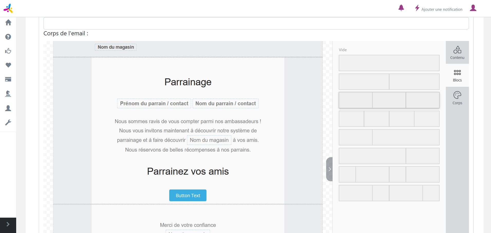 Vous pouvez ainsi créer différents courriels : courriel d’invitation, de relance, de récompense…